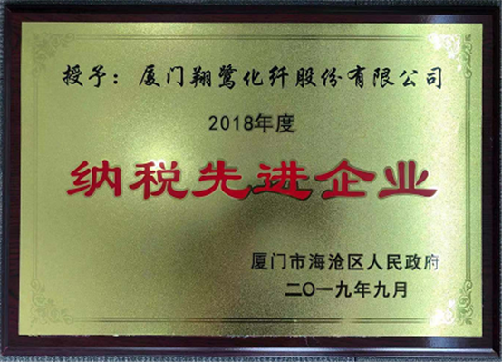 廈門翔鷺化纖股份有限公司榮獲“2018年度納稅先進企業”