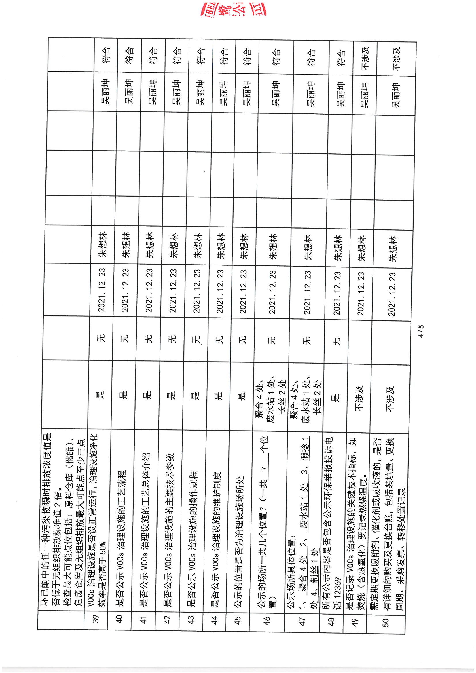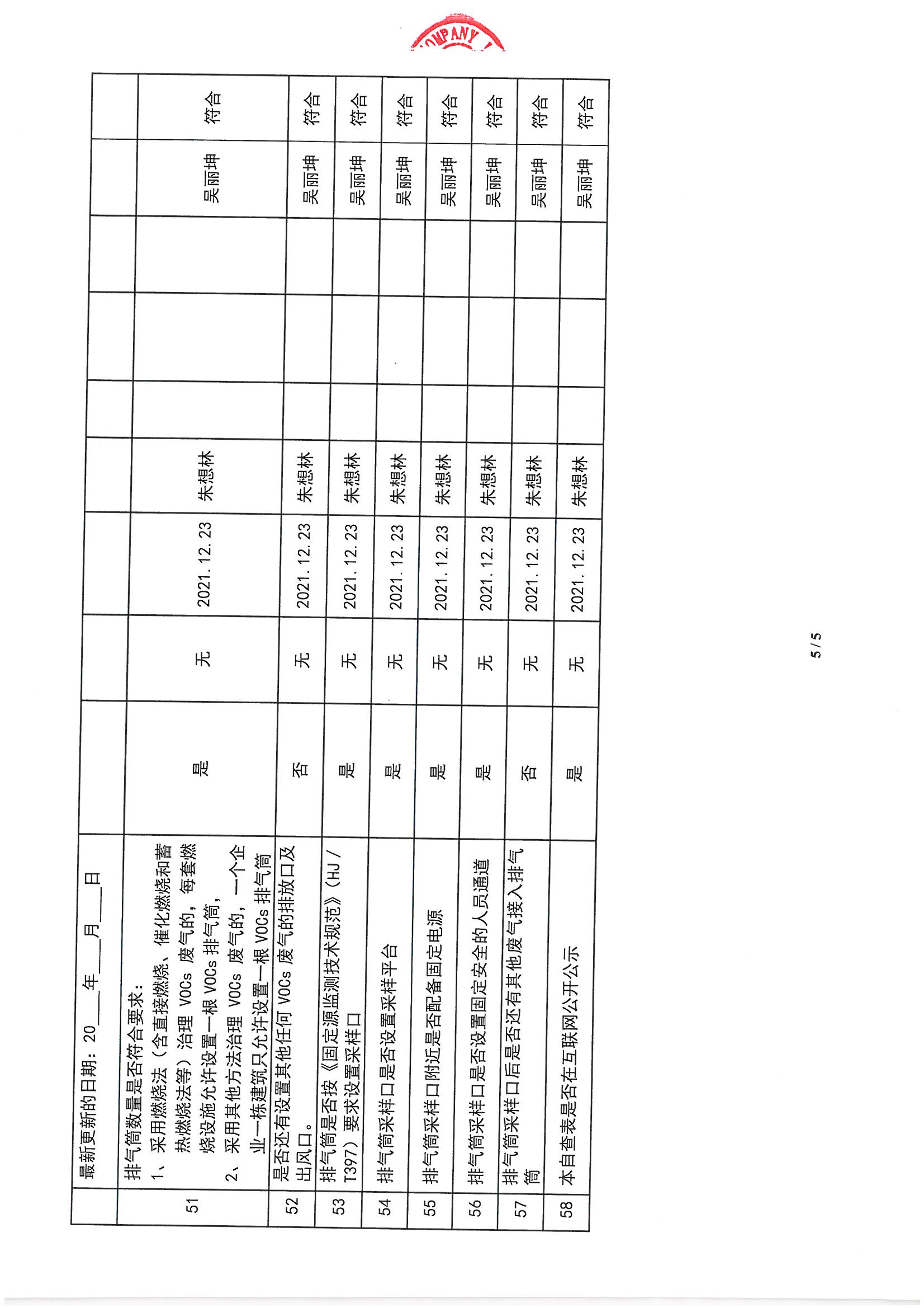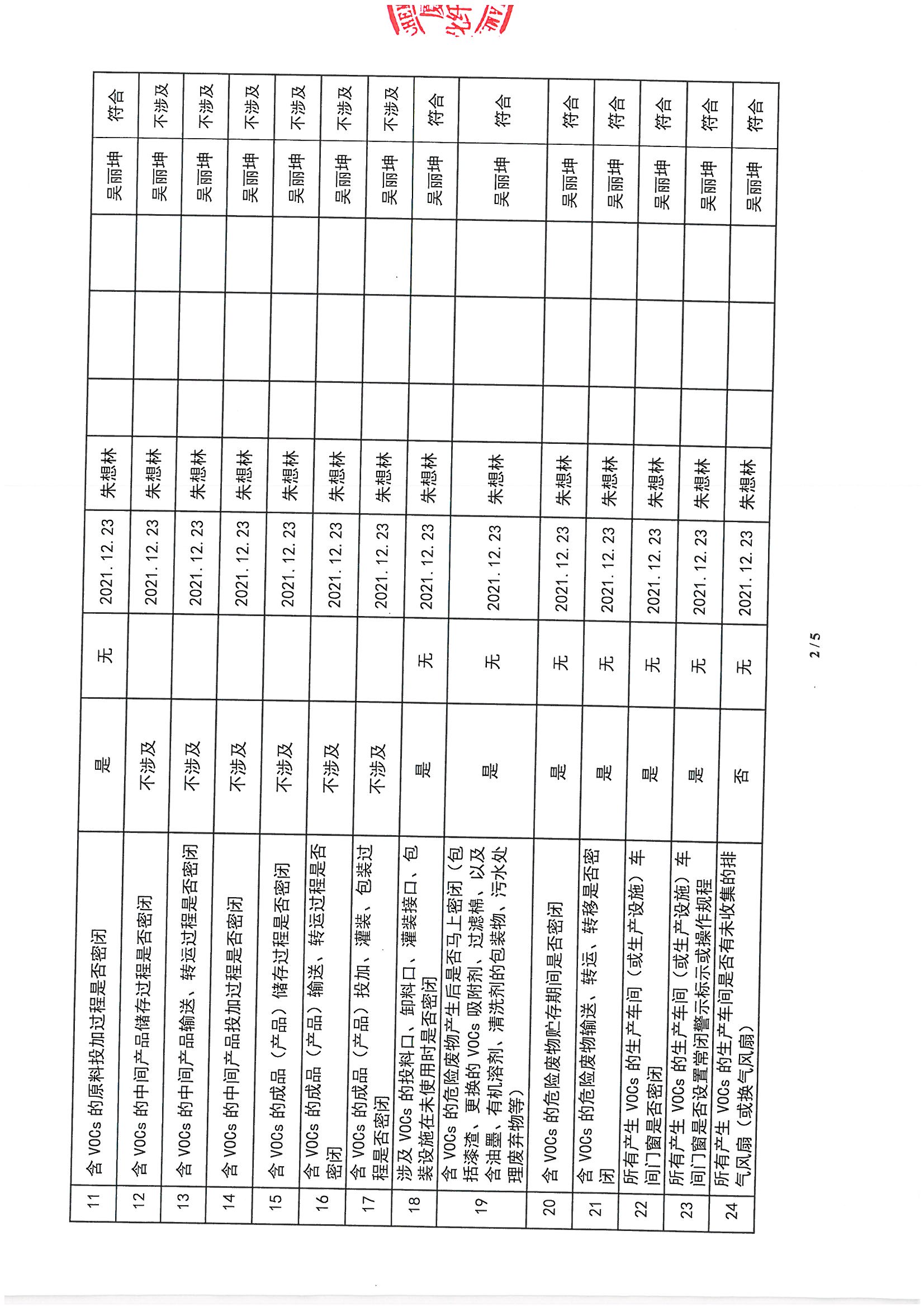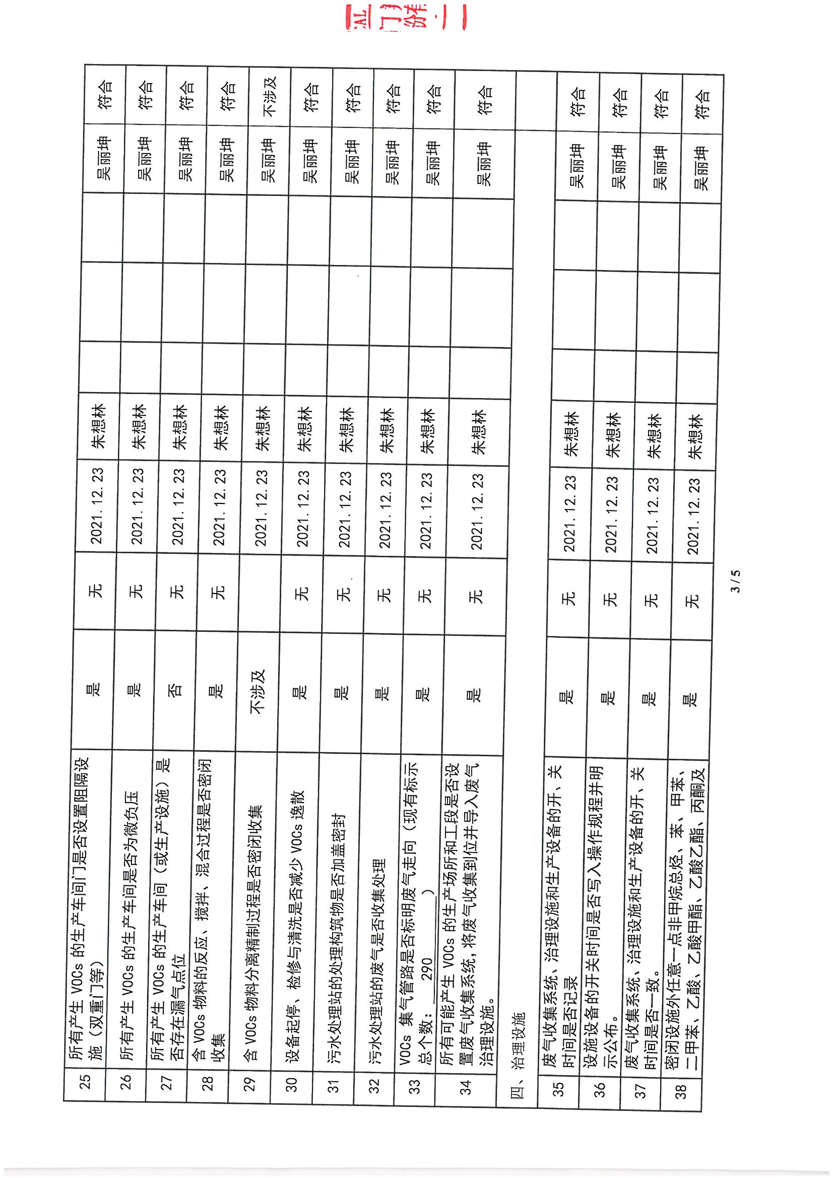廈門市揮發性有機物污染防治企業自查表 (2021年 第四季度)